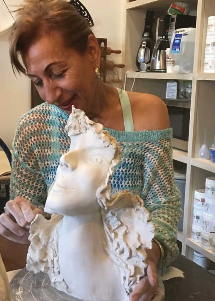 אני פוגשת את שרה בביתה היפהפה בוודלנד הילס המלא ביצירות שלה. ציורים ופסלים מרשימים מאבן ושיש מקשטים כל פינה בבית ובחצר. זו הממלכה שלה; אם היא אינה מפסלת בסטודיו היא נמצאת בחצר הבית, יוצרת מתחת לכיפת השמים.