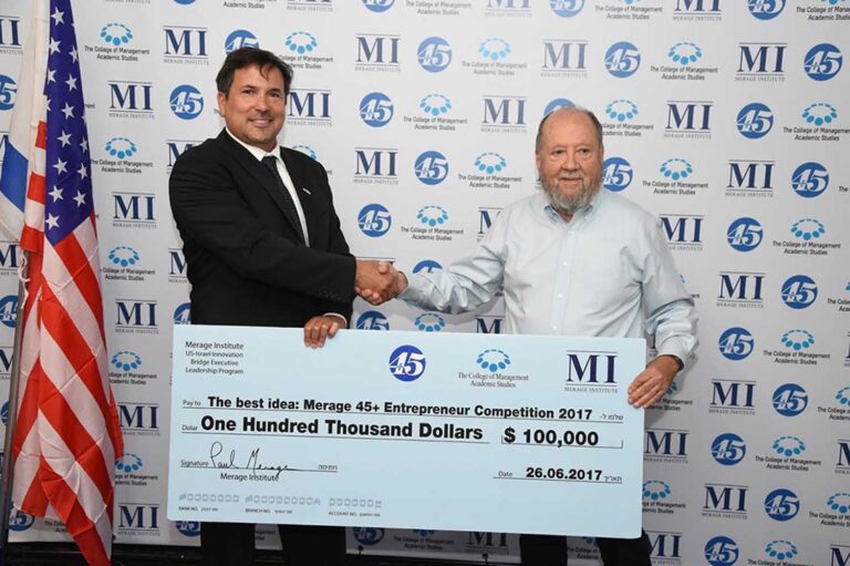 מאות יזמים הגיעו למכללה למינהל בראשל"צ, כדי לצפות בגמר של תחרות היזמות MERAGE45+ שקיימה קרן מיראז' מייסודו של איש העסקים והמיליארדר היהודי אמריקאי פול מיראז' מלוס אנג'לס, שמקיים את התחרות בישראל כדי לסייע ליזמים בני 45 ומעלה לממש את חזונם. מיראז' עצמו אמנם לא רשם נוכחות השנה, אבל במקומו הגיע מנכ"ל מכון מיראז', ישי אייזיק, המסייע לגשר בין קהיליית הסטאטראפים בישראל לארה"ב.