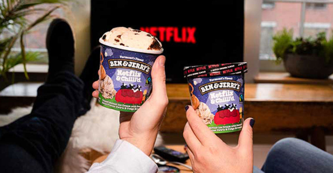 מותג הגלידה בן אנד ג'ריס השיק טעם חדש בשם "נטפליקס וצ'יל'ד" הממותג כ"טעם של נטפליקס מקורי". זוהי יוזמה של בן אנד ג'ריס ונטפליקס שחברו יחד בכדי ליצור טעם חדש שילווה את הצפייה בתוכניות ובסרטים בחברת הטלוויזיה.