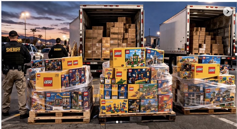בשבוע שעבר נעצרו בדרום קליפורניה שלושה בני אדם בחשד לביצוע גניבה יוצאת דופן. היעד לא היה מזוודות דולרים, מטילי זהב או מטבעות קריפטו – אלא אבני לגו. על פי החשד, השלושה גנבו את המטען החריג בזמן שהובל במשאיות של אמזון בין פורט וורת' בטקסס למורנו ואלי בקליפורניה. לאחר שהשוטרים קיבלו דיווח על כלי רכב חשודים והגיעו למקום, ניסו הגנבים לברוח, אך נעצרו בצד הדרך. בתוך המשאיות נדהמו השוטרים למצוא כמות עצומה של לגו.