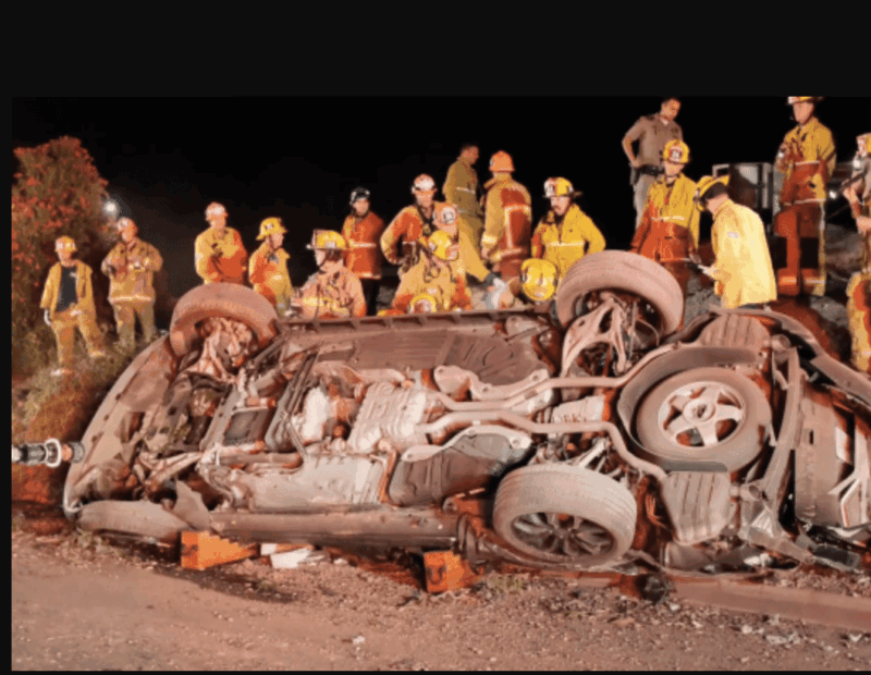 שוטרי CHP הוזעקו להתרסקות קצת לפני השעה 12:30 ביציאה של שופ אווניו, שם מצאו רכב שטח שהועף מהכביש המהיר והתרסק במורד סוללה. שלושה בני אדם נלכדו מתחת לרכב וצוותי כיבוי הוזעקו כדי לשחרר את הקורבנות מההריסות.