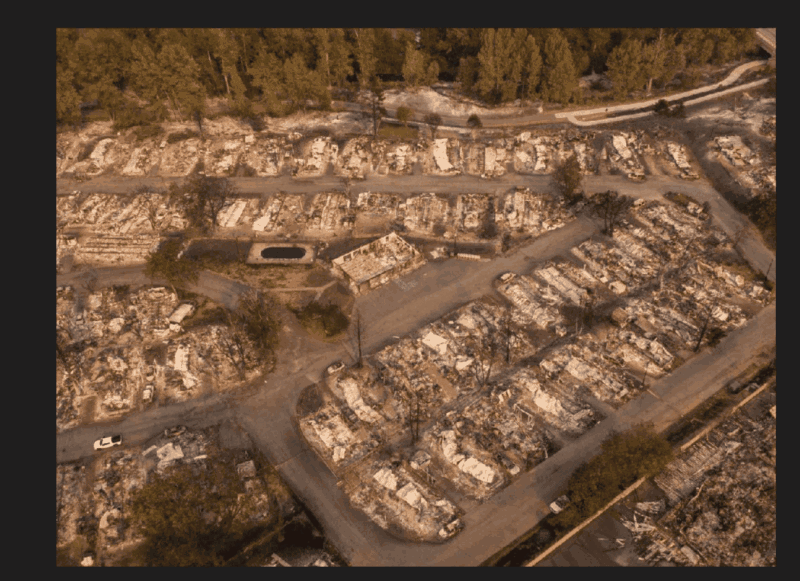 בתקשורת המקומית השוו את המהירות העצומה שבה הגיעו הלהבות לעיירה לאסון שאירע לפני שנתיים בפרדייז, קילומטרים ספורים משם. בשריפה אז נספו 82 בני אדם. תושבי פרדייז, אגב, נדרשו גם הם להתפנות השבוע מבתיהם, אך בהמשך הרשויות מסרו שעליהם רק להיות דרוכים לאפשרות שכזו. "הייתה לנו חומה עצומה של אש שהגיעה ועשתה כל שביכולתה להשמיד כל מה שנקרה בדרכה, ולצערי כמה קהילות היו ממש בדרך, ממש כמו שקרה בפרדייז", אמר דובר שירותי הכבאות בקליפורניה.