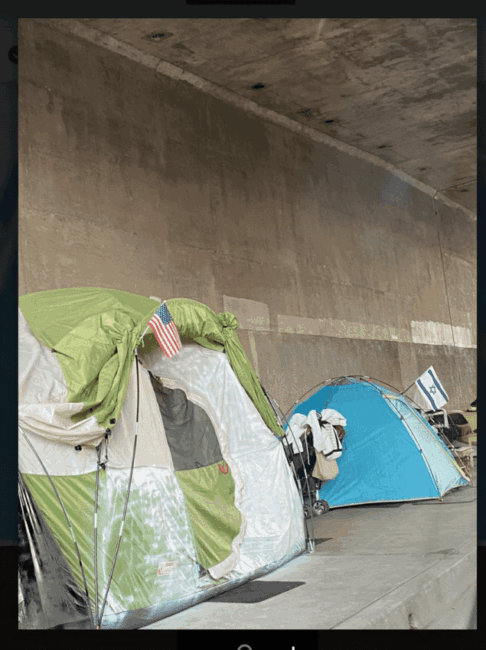 מיכל לוי, ישראלית תושבת אנסינו, חשבה שראתה בשנה האחרונה בלוס אנג׳לס את כל השיאים נשברים. אז זהו, שלא. ״שלום וחג שמח״, היא מדווחת הבוקר למערכת האתר, ״נסעתי היום בשדרות Hayvenhurst באנסינו ושיפשפתי את העיניים כלא מאמינה: בין קבוצת אוהלים של חסרי הבית היה גם אוהל אחד עליו הוצב דגל ישראל!