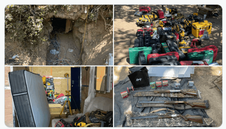 שוטרים בסן חוזה, קליפורניה, הופתעו לגלות בונקר משוכלל של מחוסרי בית, שהיה מלא בסחורה גנובה ואקדחים בסכום כולל של יותר מ-100,000 דולר. בתוך כך, המשטרה המקומית בסן חוזה, פרסמה תמונות של חלק מהשלל שהוחבא בבונקר. בין השלל שנתפס – שלושה רובי ציד אקדחים ותיבות תחמושת.