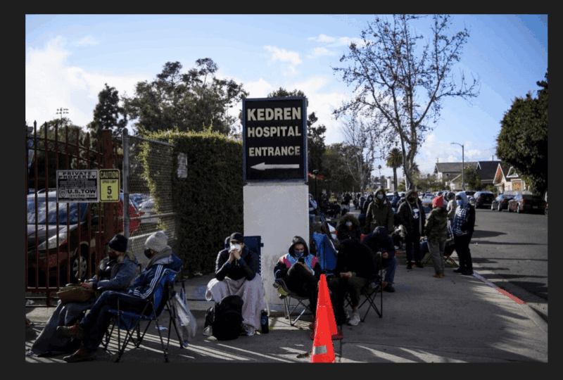 "אם החיסון הזה פשוט הולך לפח, איזו תועלת צומחת לזה ממישהו?", אומרת איליין לו, שבאה להמתין ליד המרכז הרפואי קדרן בבדרום לוס אנג'לס. חלק מהממתינים שם עומדים בתור כמעט 18 שעות, ובין המחכים אפשר למצוא גם בחור בשם אדם. אין לו שום בעיה לשבת ולחכות: "זה לא שיש משהו פתוח עכשיו, אז אם לא הייתי כאן גם ככה הייתי ישן. אם זורקים את החיסונים, למה לבזבז אותם?".