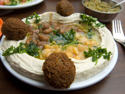 humus-plate-with-falafel_C לא מזמן פרקנו מזוודות מלאות כביסה עפשה, מעילי פרווה וסוודרים מצמר נאקות עבה. זה עתה שבנו  העירה מהתפוח הנפוח והקפוא. ניו יורק באביב זה אנטרטיקה בסתו. תנאי מזג אויר אכזריים במיוחד לתולעת תפוחים כמוני שאוהבת את ההבל החם של תל אביב התוססת ולא את הביוב הקפוא שעולה על גדותיו ומאיים להציף את חדרי במלון חמישה כוכביא. הכרך הקפוא מבטיח הפתעות למכביר ומצטיין במיוחד במזללות מזרח תיכוניות לרוב, ומכוני עיסוי לבהונות מוכות אקזמה.