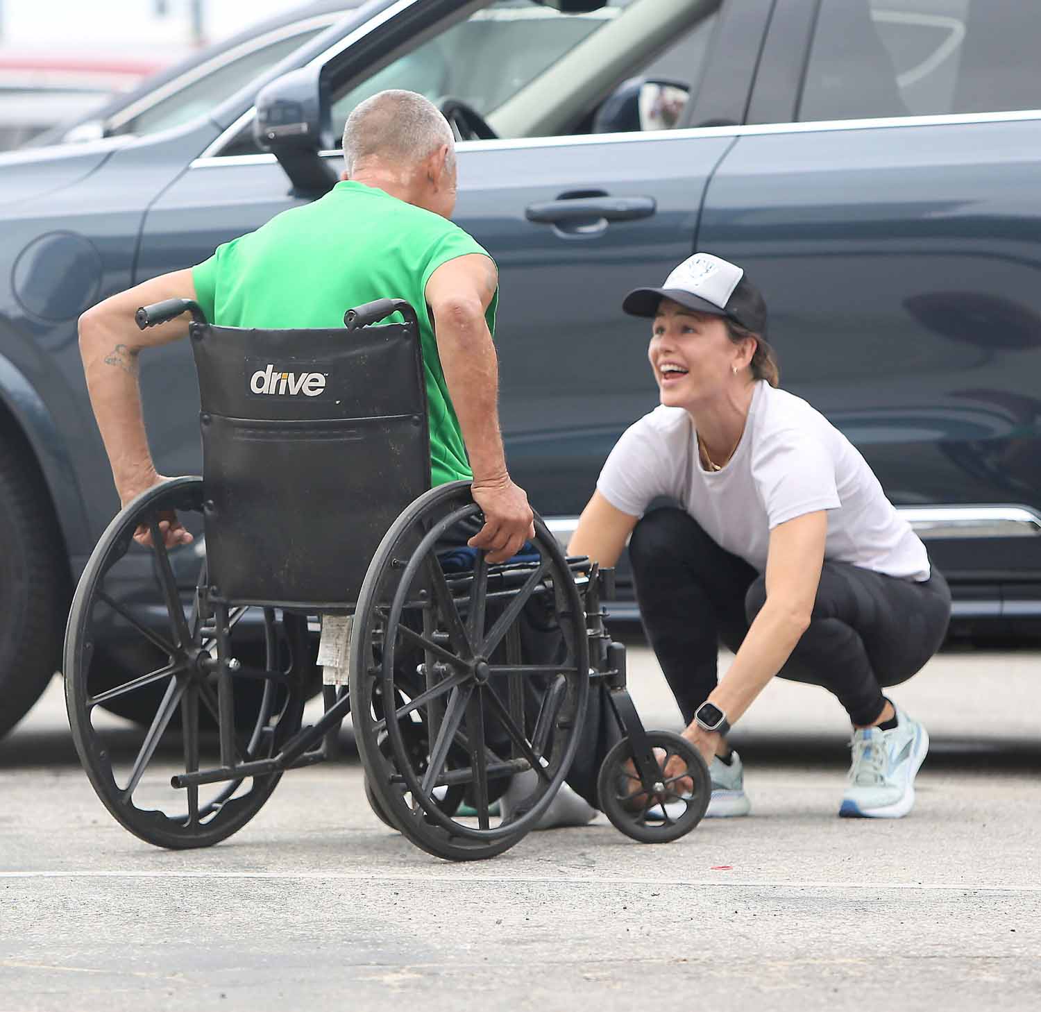 מי שתועדה השבוע באקט אנושי מחמם לב שכזה הייתה השחקנית זוכת גלובוס הזהב ג'ניפר גארנר (51) שנתקלה בהומלס ישוב בכיסא גלגלים בזמן שחנתה במגרש חנייה בסנטה מוניקה והחליטה לרדת מהרכב שלה ולסייע לו.
