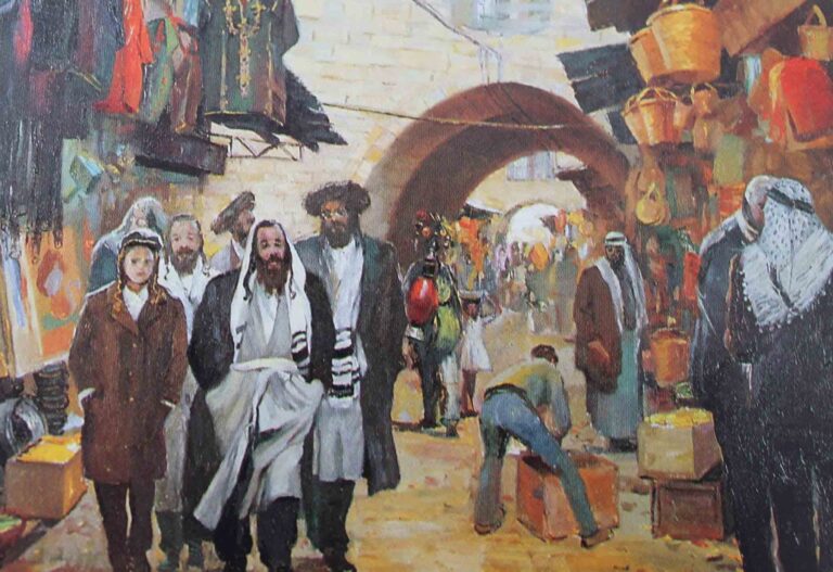 הצייר מרדכי ג׳נאשווילי זכה באושר גדול כשצייר את נוף ירושלים בגלות ותמונות על נושא ירושלים צויירו על ידו מן המקור, במולדת.מכחול הצייר צייר בתאווה את הנוף היפה של גאורגיה ואת הנוף המרתק של ארץ ישראל, מכיוון שנשמתו עצמה היתה באחדות של שתי מדינות אלו. הוא בניהן של שתיהן. אחת לימדה אותו את האהבה והשנייה – לא לשכוח את האהבה. הרבה דורות מתו, אך המכחול הנלקח ממולדת האבות, נמסר מדור אל דור כדי שהצבעים הנכתבים במכחול ישירו על אהבה. המח לא התגבר על האהבה ״ כי עזה כמוות האהבה״, לכן התחרתה האהבה בעוז נגד המוח: כדי להציל את החיים. גם את יצירתו של מרדכי ג׳נאשוויל הצילה את האהבה. המכחול שלקח אתו הצייר מן המולדת, הביא אותו שוב למולדתו כדי להטביל את המכחול באהבה ההיא.