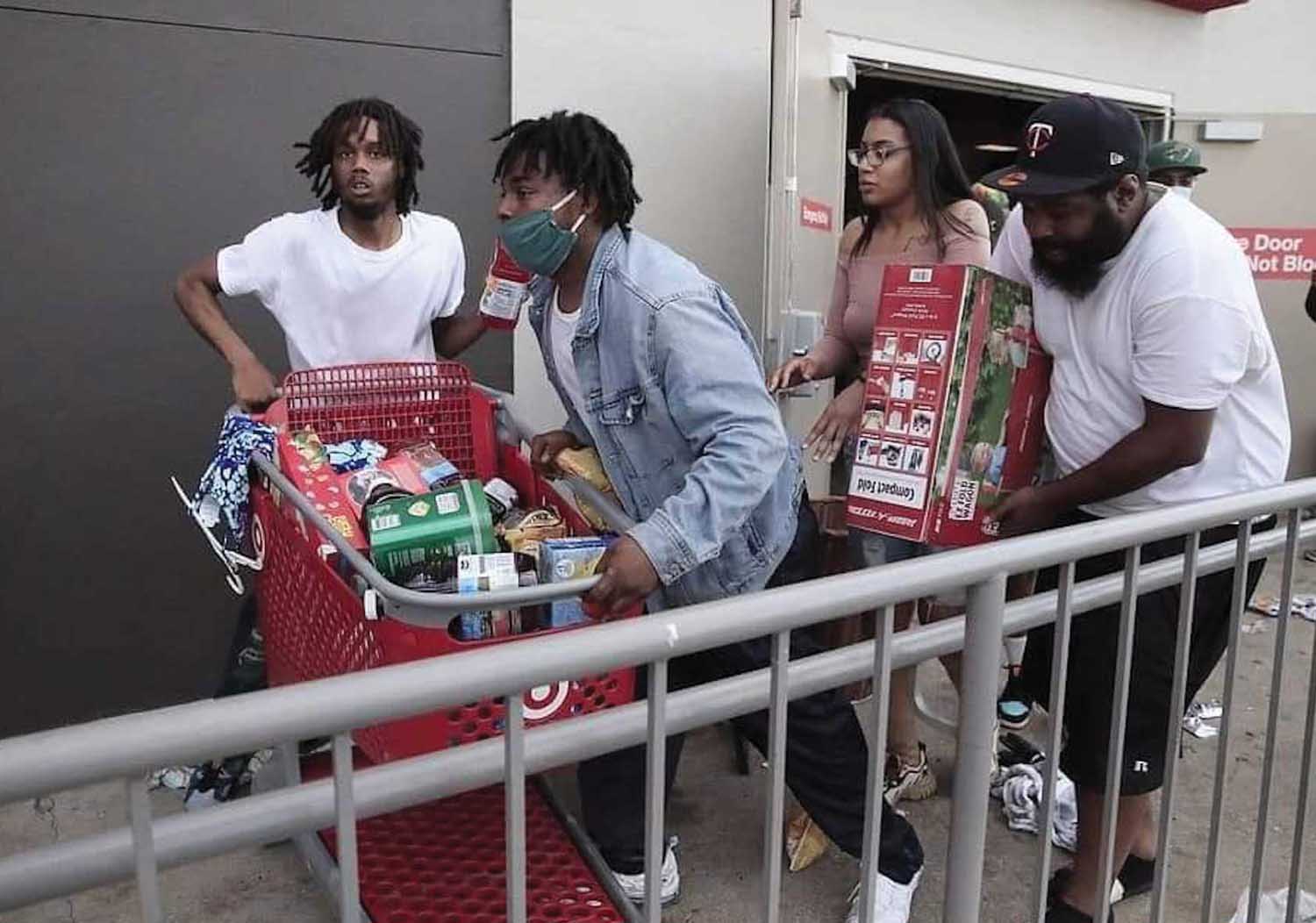 המתפרעים צעירים, לבנים ובעיקר שחורים, ובכל מקום הם שוברים את הדלתות וחלונות הראווה, פורצים כמו נחיל פנימה, גונבים ורצים החוצה. המון משתולל, כמו ארבה, ואז ממשיך הלאה, לשדה הבא. הם מצלמים הכל, הפכו ל״כתבים״ מהשטח, יותר בכדי להתגאות במעשה ידיהם ולנסות אח״כ לתבוע (תמיד מענין כשהפושע מכריז שהוא הקורבן).