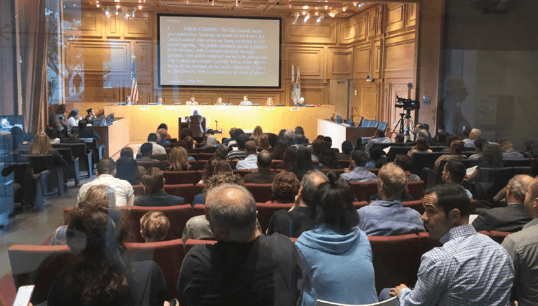 תתן חסותה ותהפוך לעיר הראשונה בארה״ב שמראה את הסרט? הלא הדבר ישמש כדלק על מדורת האנטישמיות הבוערת, ויגרום לקהילה שלמה שתרגיש נרדפת. לשימוע בפני חמשת חברי המועצה הופיעו כ-140 אנשים, מתוכם עשרה אחוזים של מתנגדי ישראל. הקהל ישב משך ארבע שעות בסבלנות, ולכל משתתף ניתנו שתי דקות להביע דעה. בנוסף, התקבלו עשרות רבות של פניות הציבור בכתב. בסופו של הערב הצביעו חברי המועצה. הפסדנו 2:3.