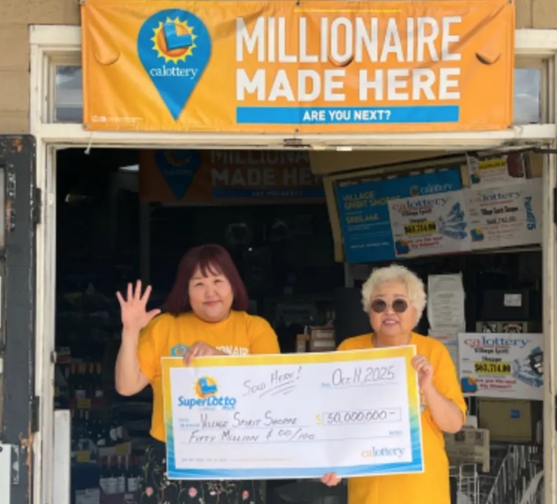 חנות משקאות בבעלות משפחתית במחוז לוס אנג'לס עשויה להיות המקום המאושר ביותר בקליפורניה. Village Spirit Shoppe, הממוקמת ב-4601 Lakeview Canyon Road בווסטלייק וילג', מכרה לאחרונה כרטיס Super Lotto Plus בשווי 50 מיליון דולר, וסיפקה את המיליונר השלישי של החנות בשמונה השנים האחרונות, כך הודיעו פקידי הלוטו של קליפורניה.