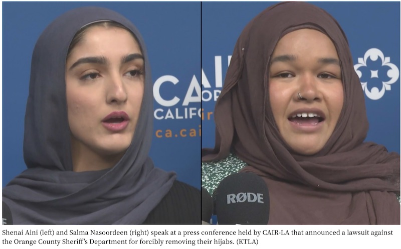 סניף לוס אנג'לס רבתי של המועצה ליחסי אמריקה-איסלאם ( cair) תובע את מחוז אורנג', את מחלקת השריף של מחוז אורנג', את השריף דון בארנס וסגני OCSD  בגין הסרת חיג'אבים בכוח לכאורה של שתי נשים בעת מעצרן בהפגנה באוניברסיטת קליפורניה באירווין בשנה שעברה. בתגובה, מחלקת השריף טוענת שהמידע ששותף במסיבת עיתונאים שהודיעה על הגשת התביעה אינו "מדויק".