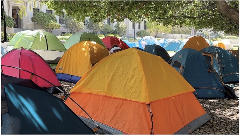סטודנטים תומכי חמאס הקימו "מחנה" במכללת "אוקסידנטל קולג'" בדרום קליפורניה ודורשים ממועצת הנאמנים של בית הספר להתנתק מכל קשר פיננסי עם ישראל, עם ייצור נשק ועם בתי כלא פרטיים. המחנה, המכונה "האזור המשוחרר מרפיח לג'נין", הוקם ביום שישי במכללה הפרטית לאמנויות ליברליות, הממוקמת ב קמפוס רוד 1600, דרומית לאיגל רוק.