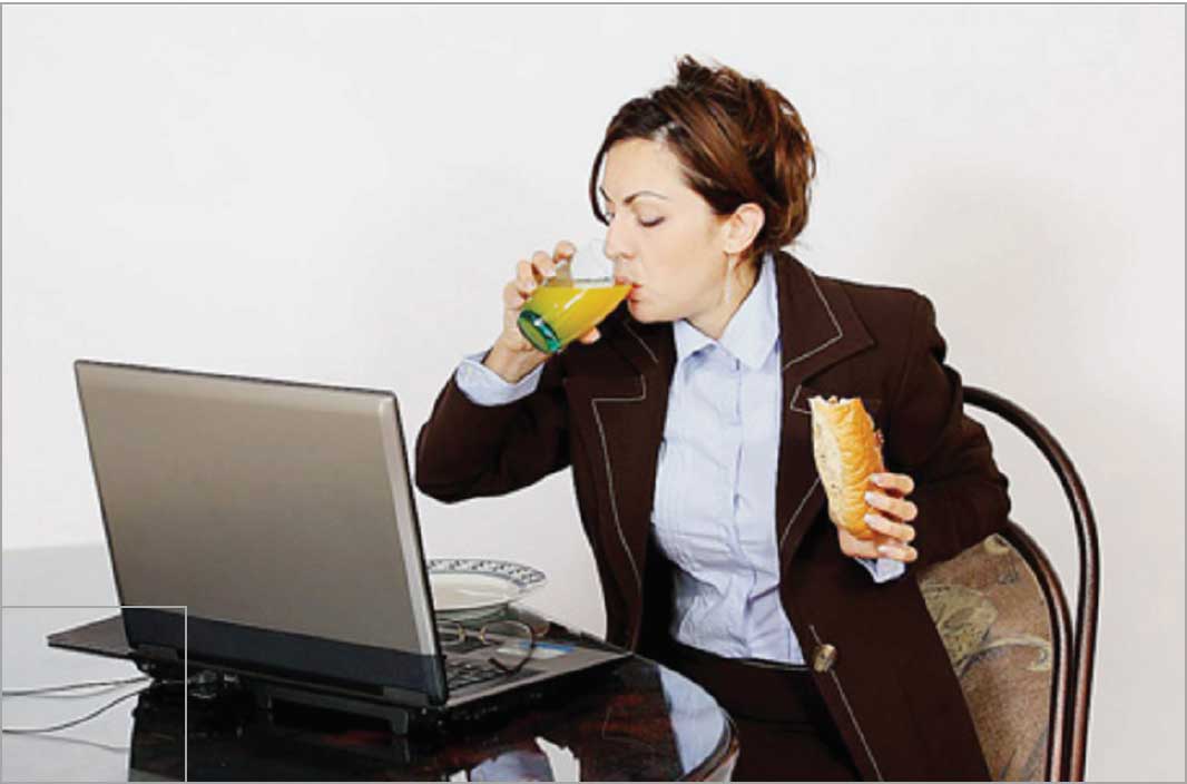 אכילה לא מודעת, בה אתם מרוכזים בכל מיני דברים, רק לא באוכל, היא אחת השגיאות הגדולות שאנחנו עושים במהלך היום, ומבלי לשים לב (כאמור – לא מודעת). מחקר שנערך בשנת 2014 בקווינס קולג' שבניו יורק מצא כי אנשים שאוכלים מעל שולחן המחשב בעבודה, לא רק מעלים את הסיכון שלהם להשמנה אלא גם את הכולסטרול, ורוב הסיכויים שהם יסבלו גם ממחסור בוויטמינים. לפי המחקר שפורסם במגזין International Journal of Obesity, אנשים שאוכלים במשרד מעל המחשב נוטים לאכול יותר מדי ומהר מדי, וזה גורם להשמנה.