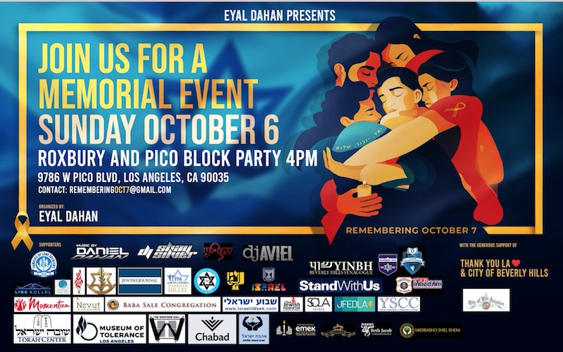 הציבור מוזמן לאירוע זיכרון המוני לקורבנות ה-7 באוקטובר. הצטרפו אלינו ביום מראשון, 6 באוקטובר כשאנחנו מתכנסים כדי לכבד את הזיכרונות של אלה שאבדו ולחגוג את החוסן של הקהילה שלנו.